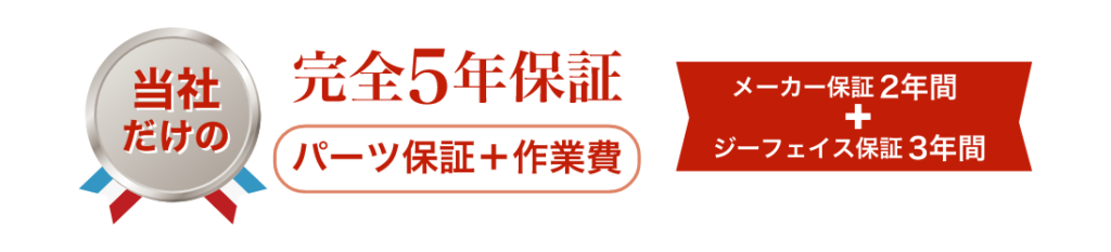完全5年保証でパーツの交換から工事代、交通費も完全無料!