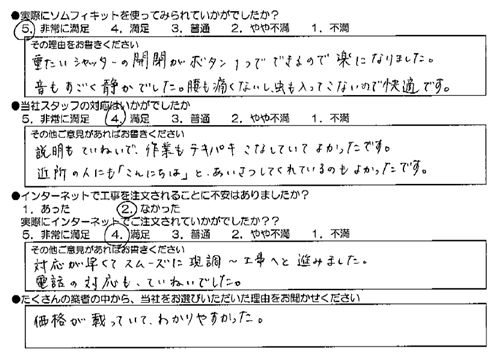 Q:実際に電動シャッターをつかってみられていかがでしたか?