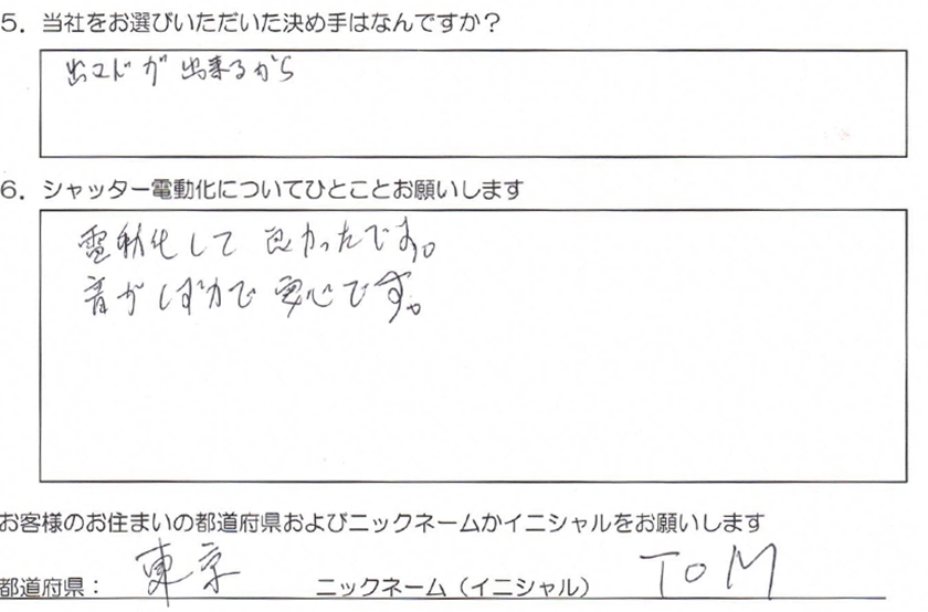 お客様の声「出窓のシャッター電動化ができるから」