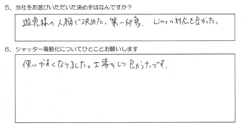 施工後のお客様のお声をいただきました。