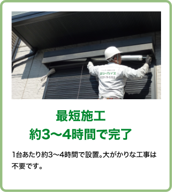 1台あたり約3~4時間で設置。大がかりな工事は不要です。