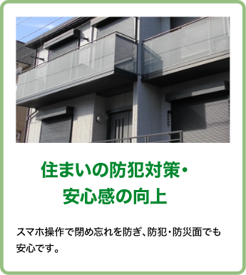スマホ操作で閉め忘れを防ぎ、防犯・防災面でも安心です。