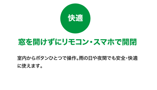 室内からボタンひとつで操作。雨の日や夜間でも安全・快適に使えます。またコネクスーン(オプション)を使えばスマホでの操作も可能です。