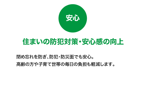 閉め忘れを防ぎ、防犯・防災面でも安心。