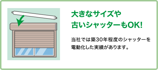 既存シャッターを活かし、必要最小限の電源工事で完結するため、大がかりなリフォーム工事は不要です。