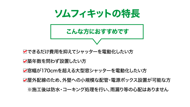 価格を抑えながら、既存窓シャッターを電動化したい方に